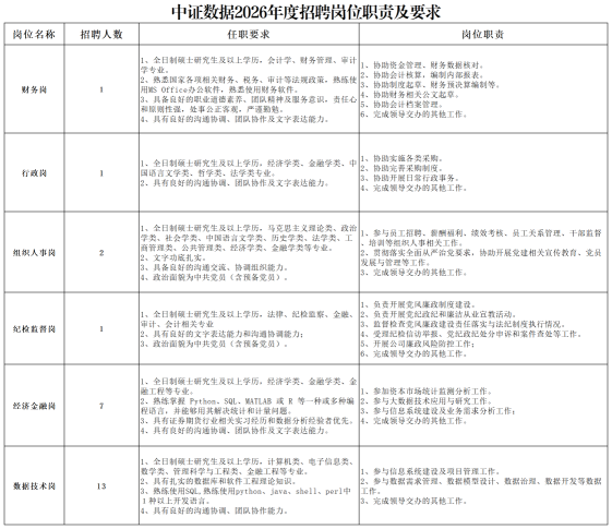 附件:中证数据2026年度招聘岗位职责及要求